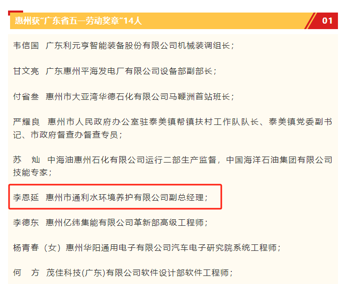 近年來(lái),市水務(wù)集團(tuán)大力弘揚(yáng)工匠精神,在奮進(jìn)新征程中,涌現(xiàn)出一批批如李恩延般可敬可愛(ài)的勞動(dòng)者們,他們愛(ài)崗敬業(yè)、勇于創(chuàng)新、甘于奉獻(xiàn),用汗水澆筑收獲,以實(shí)干篤定前行,用實(shí)際行動(dòng)譜寫(xiě)惠州水務(wù)勞動(dòng)贊歌。