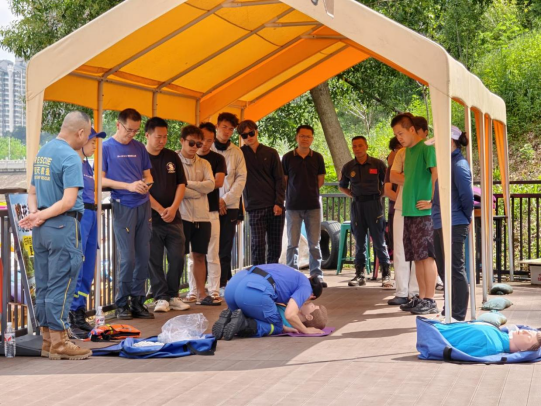 藍(lán)天救援隊(duì)結(jié)合近期發(fā)生的溺水和救援案例,現(xiàn)場(chǎng)拆解“黃金四分鐘”,他們帶領(lǐng)景區(qū)和經(jīng)營(yíng)業(yè)態(tài)工作人員分組練習(xí),從清理呼吸道、開(kāi)放氣道到精準(zhǔn)按壓,逐一糾正手勢(shì)偏差。全域覆蓋從“專(zhuān)業(yè)隊(duì)”到“全員兵”的安全共識(shí)。接著,槳板運(yùn)動(dòng)協(xié)會(huì)與藍(lán)天救援隊(duì)分別對(duì)槳板救援、繩包救援、徒手救援等進(jìn)行了系統(tǒng)化的培訓(xùn),景區(qū)內(nèi)各業(yè)態(tài)的工作人員也積極地參與了救援實(shí)踐的學(xué)習(xí)。