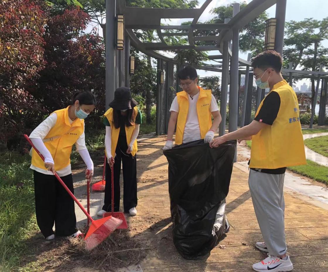 志愿者們發(fā)揚不怕苦、不怕臟、不怕累的精神,頂著炎炎烈日,清掃落葉,撿拾垃圾,拔掉雜草。經(jīng)過近一個小時的奮戰(zhàn),河邊恢復了整潔干凈的面貌。