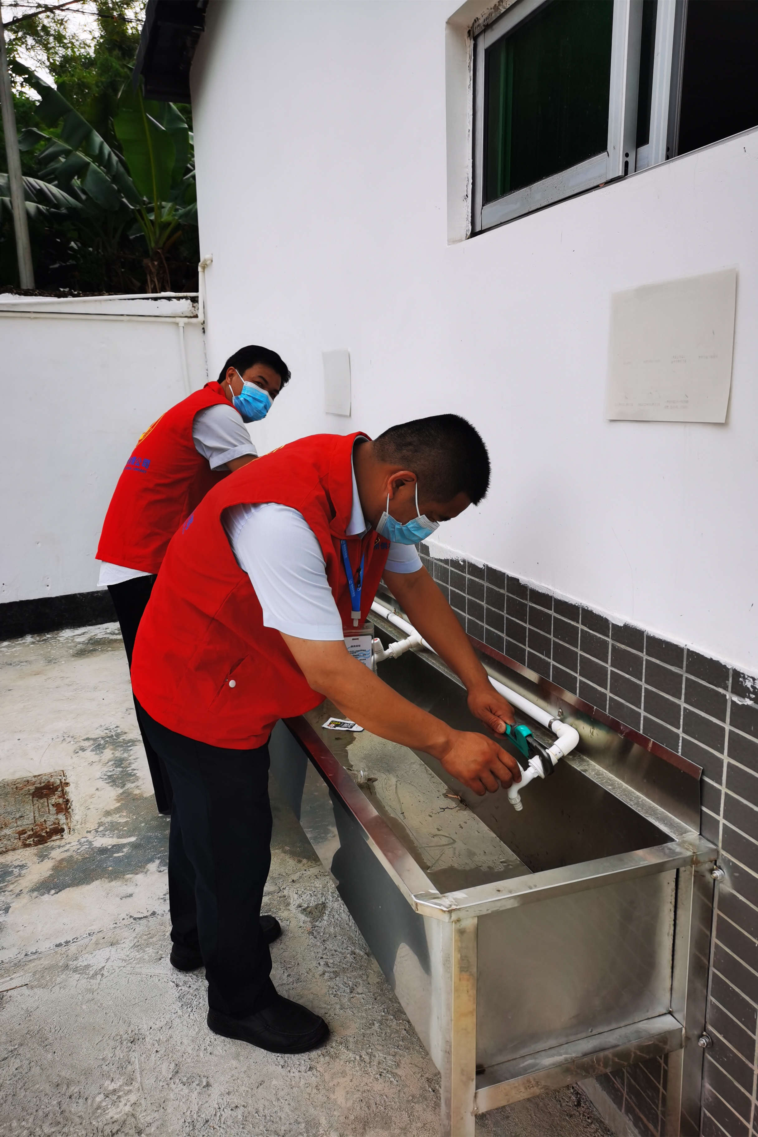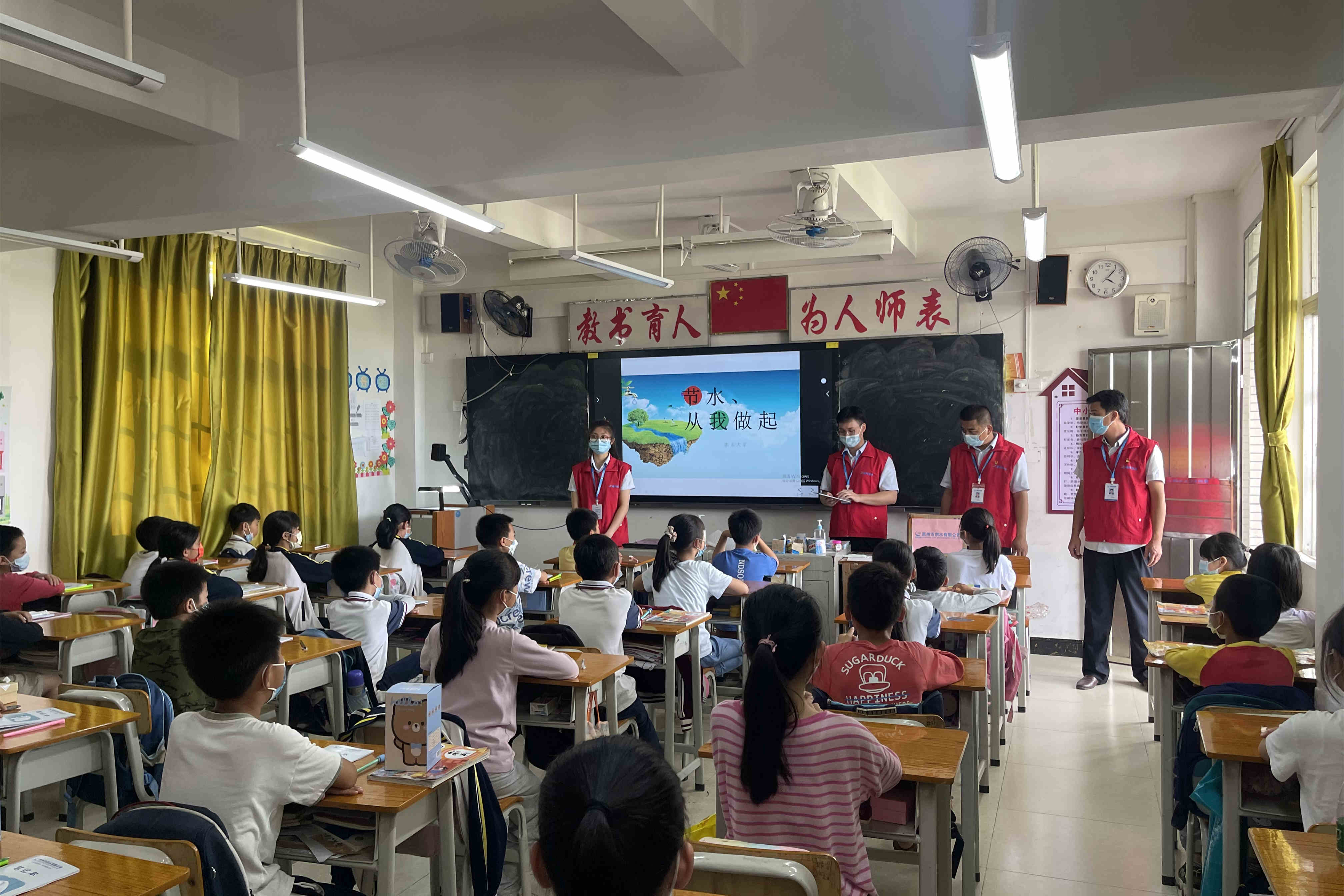 在日新小學(xué),志愿者們兵分兩隊,分別對校內(nèi)的下水管道、水龍頭等供水設(shè)施進(jìn)行檢修和維護(hù),以及開展“用+水”科普講堂。課堂上,志愿者們通過講解實例、分析理論,向同學(xué)們展示了自來水的產(chǎn)生、節(jié)水小竅門及用水常識法規(guī)等內(nèi)容。