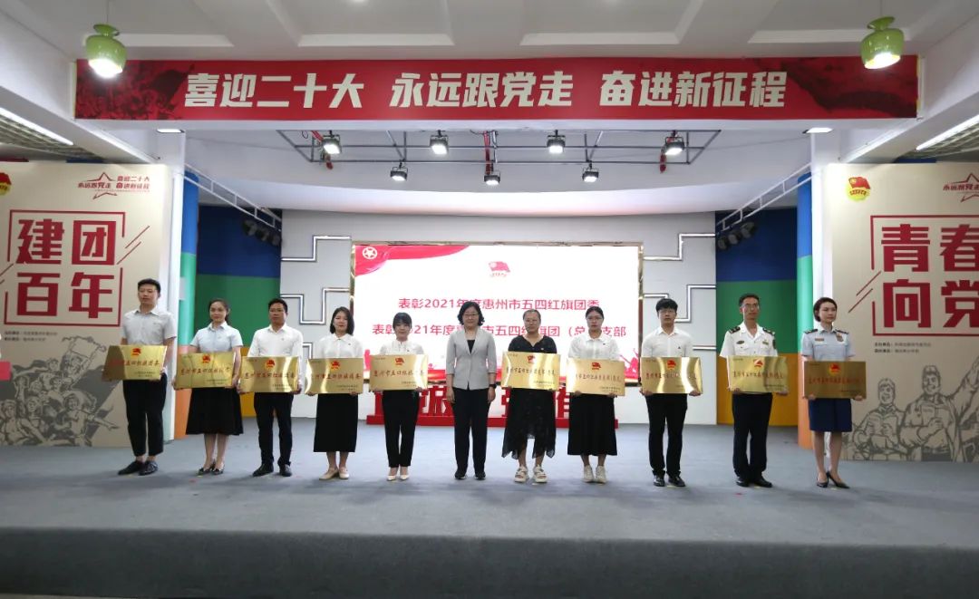 會(huì)議表彰了2021年度惠州市共青團(tuán)“兩紅兩優(yōu)”,市供水有限公司團(tuán)委被授予2021年度“惠州市五四紅旗團(tuán)委”榮譽(yù)稱號(hào),楊朝暉為市五四紅旗團(tuán)委頒發(fā)牌匾。